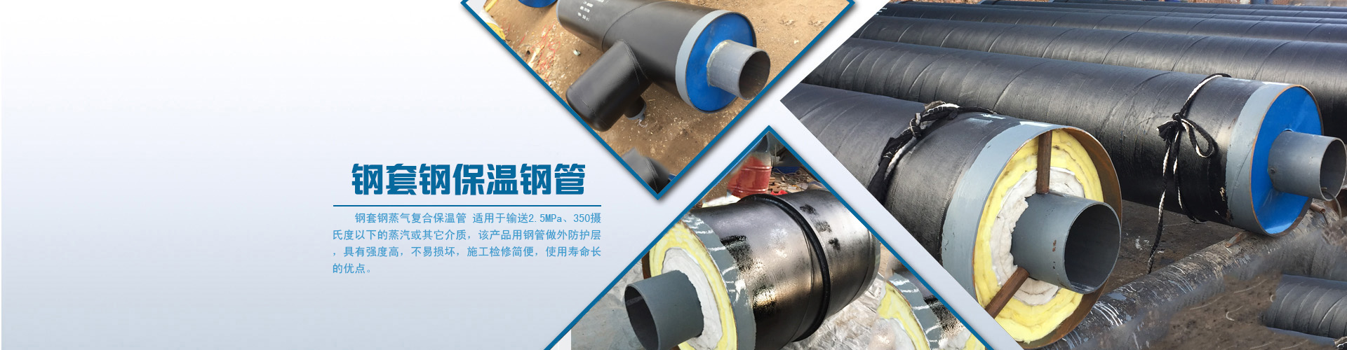 鋼套鋼直埋蒸汽保溫管又叫做管中管,鋼套管,鋼套鋼保溫管道由輸送介質(zhì)的工作鋼管、玻璃棉保溫隔熱層、鋁箔反射層、不銹鋼緊固帶、滑動導(dǎo)向支架、空氣保溫層、外護鋼管、外防腐層